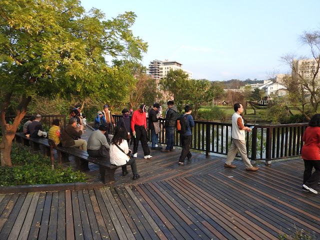 再往前走就可看到右側的璢公圳遺址-台大生態水池,池邊與池內動植物生態系統發育蓬勃,水鳥、魚類、烏龜隨處可見。
