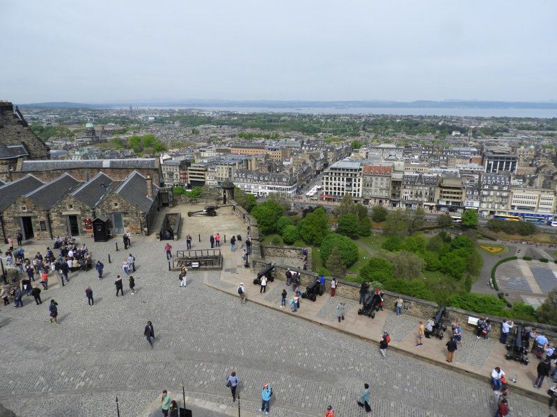 在城堡高處廣場俯瞰愛丁堡市區,視野十分開闊,舉凡愛丁堡的著名景點都一一在目,也凸顯了這一個盤據天險的堡壘居高臨下控制全市,易守難攻的優越特點。