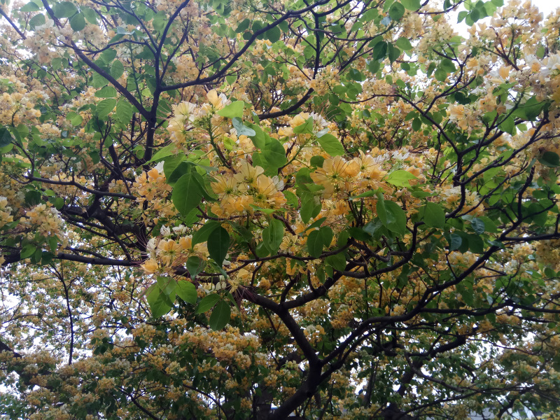 此樹不開花時與周圍綠樹無異,每天成百上千人走過大概也不會注意到她,可見人要衣裝,佛要金裝。眾人有眼不識泰山,徒呼奈何!一笑!